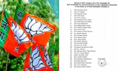Big Breaking: भाजपा ने यूपी चुनाव के लिए अपने 91 प्रत्याशियों की तीसरी लिस्ट जारी…