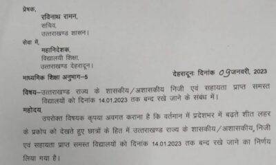 Big Breaking: उत्तराखंड में स्कूलों को बंद रखने के लिए अब आया ये बड़ा आदेश, पढ़ें कब तक रहेंगे स्कूल बंद, देखें…