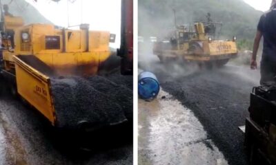 गजबः उत्तराखंड में ऐसे की जा रही जनता के पैसों की बर्बादी, बारिश में हो रहा सड़क का डामरीकरण…