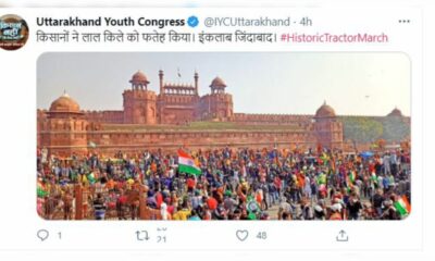 किसान आंदोलन: उत्तराखंड यूथ कांग्रेस का विवादित ट्वीट वायरल..फिर क्या हुआ जानिए