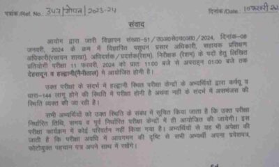 February 10, 2024बड़ी खबर: कर्फ्यू के चलते भी UKSSSC कि परीक्षा में कोई परिवर्तन नहीं किया गया है।...