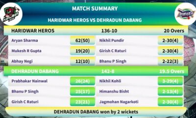 रोमांचक मुकाबले में देहरादून दबंग की जीत, हरिद्वार हीरोज को दो विकेट से हराया