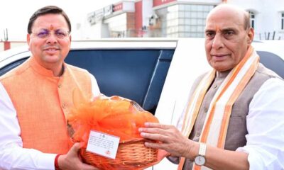 मुख्यमंत्री धामी ने केंद्रीय रक्षा मंत्री राजनाथ सिंह को चारों धामों का प्रसाद भेंट किया