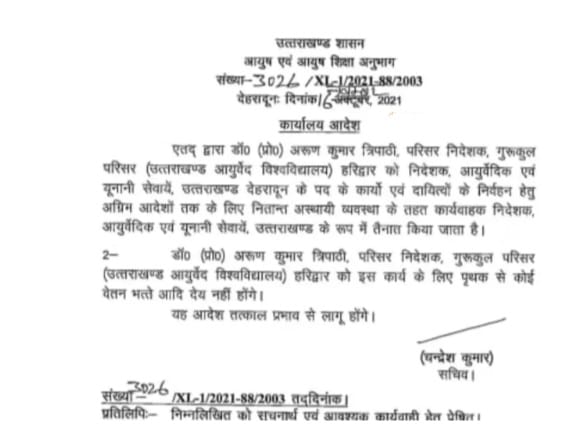 Big Breaking: उत्तराखंड आयुर्वेदिक एवं यूनानी सेवा निदेशक की जानिए किसे मिली जिम्मेदारी, देखिए आदेश…
