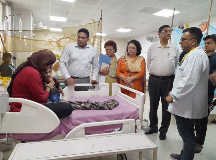 देहरादून: डेंगू के बढ़ते मामलों के बीच शासन-प्रशासन पूरी तरह से मुस्तैद है। स्वास्थ्य सचिव डॉ आर राजेश कुमार समीक्षा बैठकों के साथ ही ग्रांउड जीरो पर जाकर अस्पतालों में हालातों का जायजा ले रहे हैं। आज रविवार को छुट्टी के दिन भी स्वास्थ्य सचिव पूरी तरह से मुस्तैद नजर आये। उन्होंने स्वास्थ्य अधिकारियों के साथ कोरोनेशन-गांधी जिला चिकित्सालय का औचक निरीक्षण किया।