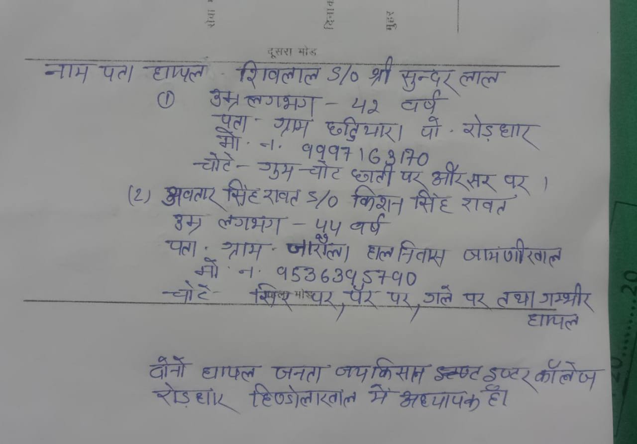 जानकारी के अनुसार, बुधवार सांय को थाना हिंडोलाखाल क्षेत्र अंतर्गत छडियारा रोड जामणीखाल के पास एक अल्टो मारुति कार अनियंत्रित होकर लगभग 200 मीटर खाई में गिर गई, जिसमें 2 व्यक्ति सवार थे, जो घायल हुए। दोनों व्यक्तियों को उपचार हेतु अस्पताल भिजवाया गया है। जानकारी के मुताबिक दोनों व्यक्ति जनता जयकिसान इंटर कॉलेज रोड़धार हिंडोलाखाल में अध्यापक हैं।