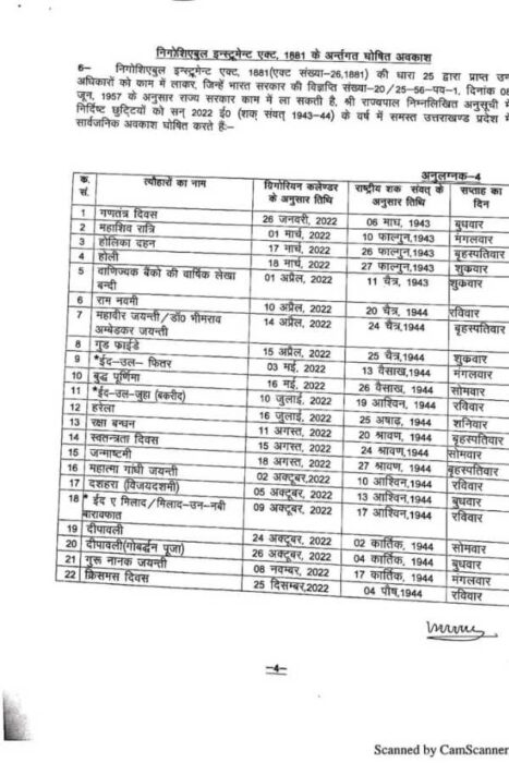 Uttarakhand Holiday 2022 List: शासन ने जारी किया कैलेंडर, यहां देखें सालभर की छुट्टियां…